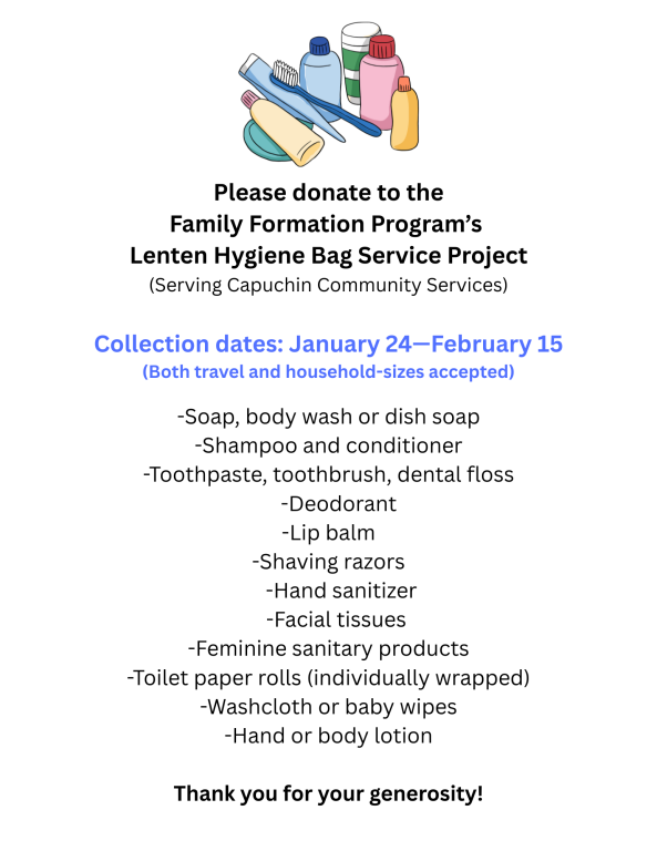 On behalf of our parish family we greet you with a blessing from scripture. “The grace of our Lord Jesus Christ, the love of God and the communion of the Holy Spirit be with you.”